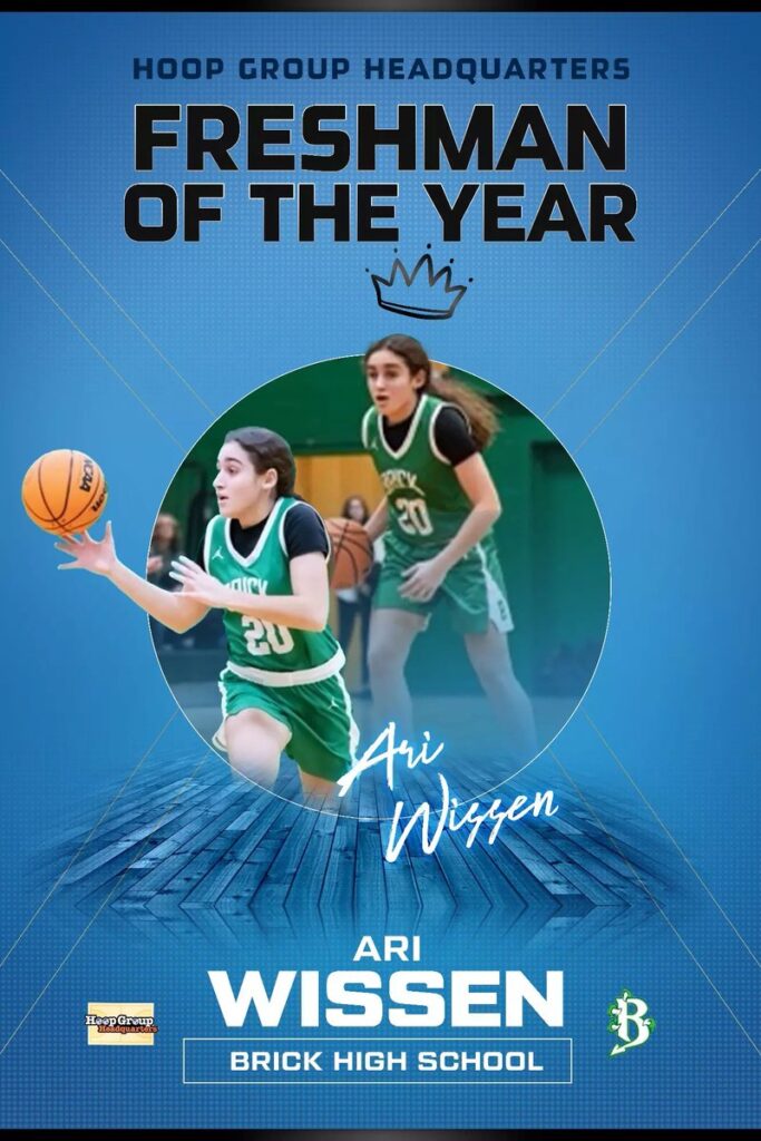 ARI WISSEN- BRICK TWP- She is flat out a walking bucket and deadly shooter to 30 feet. Her pull game is a master class for all young players. She is strong and highly competitive. She is murder off all type ball screens. She was the Shore Conference freshman of the year.